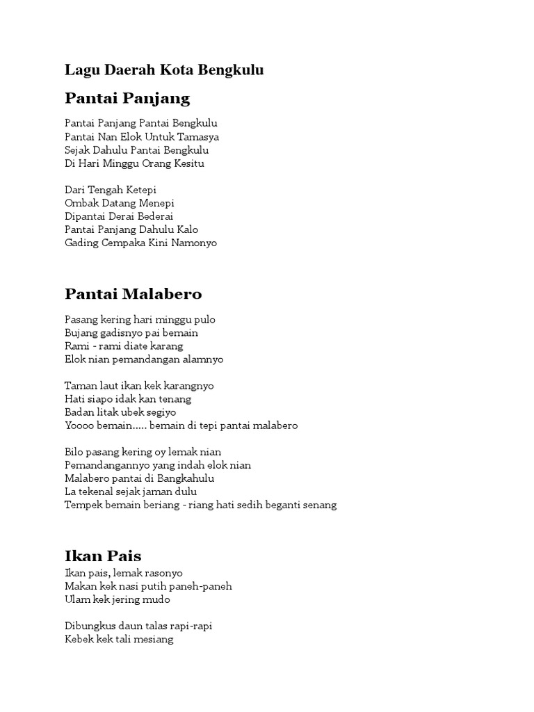 Lagu Daerah Kota Bengkulu Docx Lagu Daerah Kota Bengkulu Pantai Panjang Pantai Panjang Pantai Bengkulu Pantai Nan Elok Untuk Tamasya Sejak Dahulu Course Hero